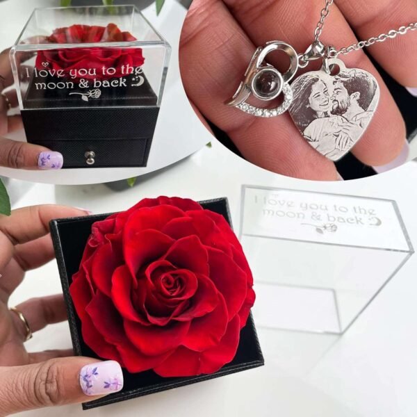 Personalised Engraved Pendant with Real Preserved Rose Gift Box