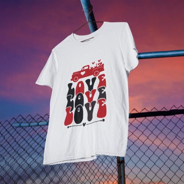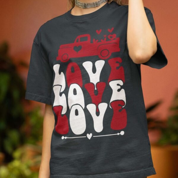 - Design: Captivating front print featuring a charming heart truck, symbolizing the journey of love with vibrant colors and intricate details.