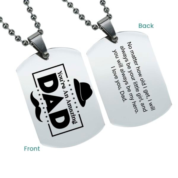 - A Symbol of Love: Every time your dad wears this dog tag, he’ll be reminded of the bond you share and the love you have for him.