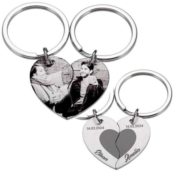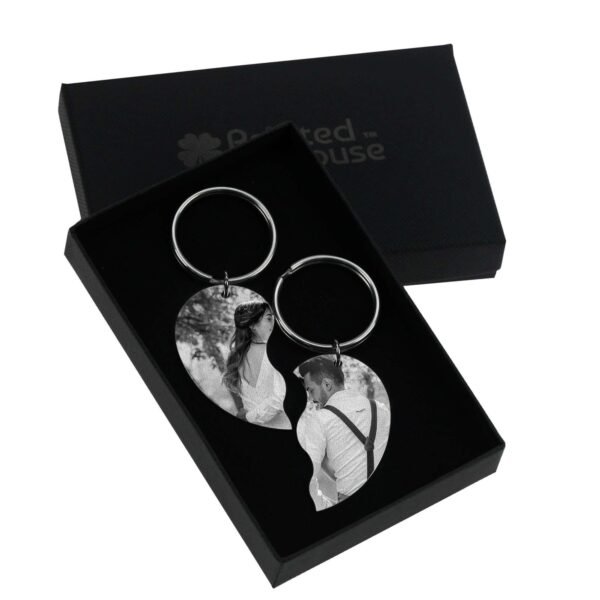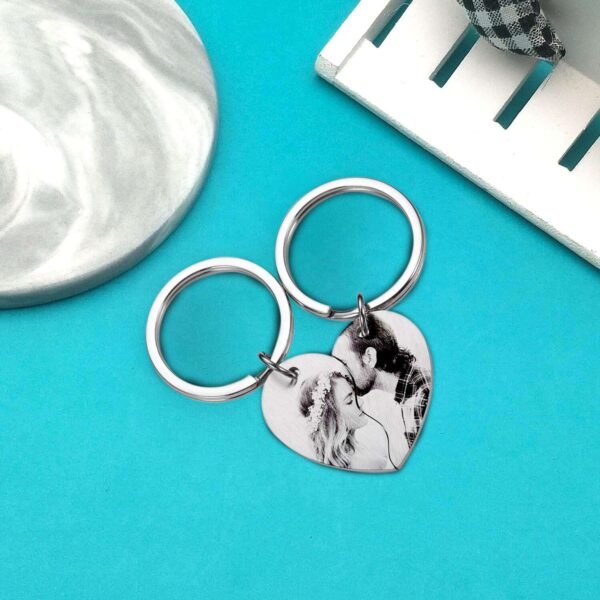 - Split Picture Design: The front of the heart keyring features a high-quality engraved photo, split across both halves to create a unique and meaningful display.