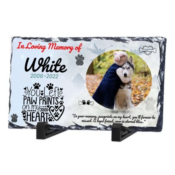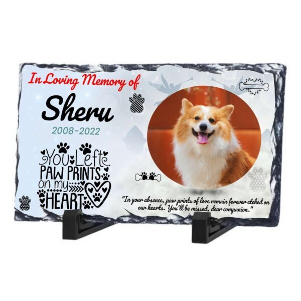 - Enduring Quality: Made from premium slate, this memorial stone withstands time, keeping your pet’s memory vivid and enduring.