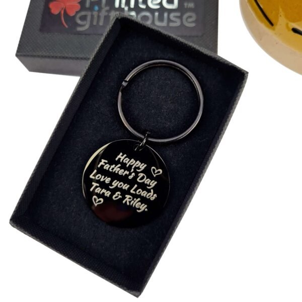 Honor the legend in your life with the Daddy The Legend Engraved Keyring. A sleek, personalised keepsake designed to celebrate your dad’s love, strength, and guidance. This stainless steel keyring features a bold black finish and an intricately engraved message that pays tribute to his legendary status.