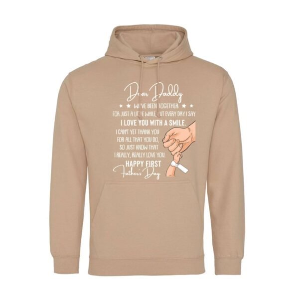 The front of the hoodie features the endearing phrase “Dear Daddy,” beautifully emblazoned alongside a heartfelt message that encapsulates the depth of your feelings. Whether it’s a token of appreciation, a birthday surprise, or a gesture to commemorate a special occasion, this hoodie serves as a reminder of the unwavering bond between a parent and their child.