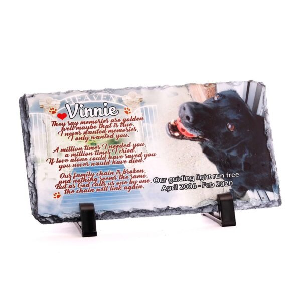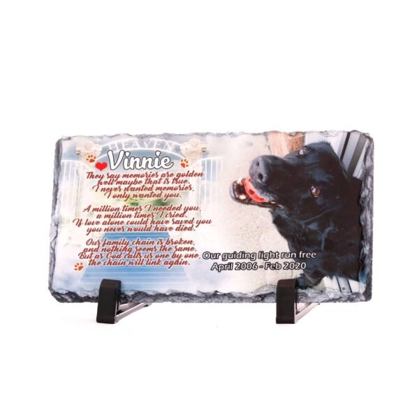 Keep your pet’s memory alive and present in your living room with this stunning, custom-printed slate. Though your pet may now be in Dog Haven, their spirit will always be close, watching over you.