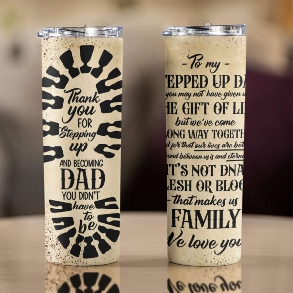 - Looking for the perfect Father’s Day gift? Show your Stepdad dad how much he means to you with a tumbler that expresses gratitude with every sip. Whether it’s for Father’s Day, birthdays, or just because, this practical yet sentimental gift is sure to be treasured for years to come. Make Father’s Day unforgettable! Order this special tumbler today and celebrate the amazing stepdad in your life!