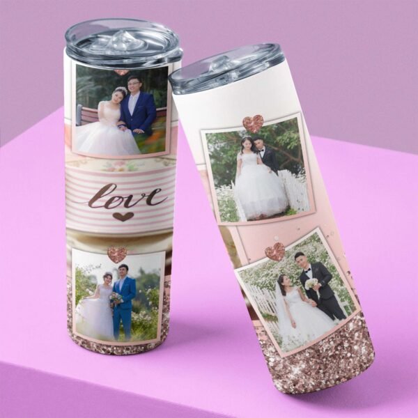 Give the gift of memories, beautifully preserved and elegantly presented. Personalised Rose Gold Tumbler is a vessel for both her favorite beverages and her most treasured moments. Personalise it with photos that tell your story, creating a timeless keepsake that whispers of love, laughter, and shared experiences. It’s a gift that will warm her heart with every sip.