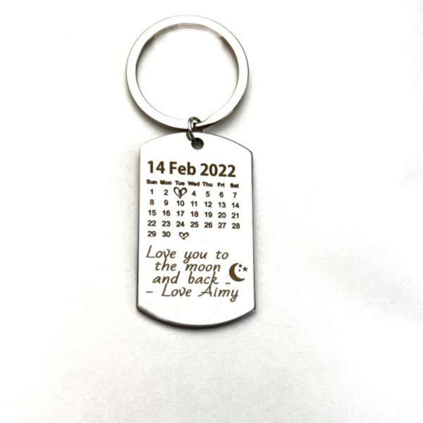 On the back of the keyring, we engrave a meaningful date of your choice—anniversary, birthday, wedding day, or any unforgettable moment—creating a deeply personal keepsake that you or your loved one will cherish forever.